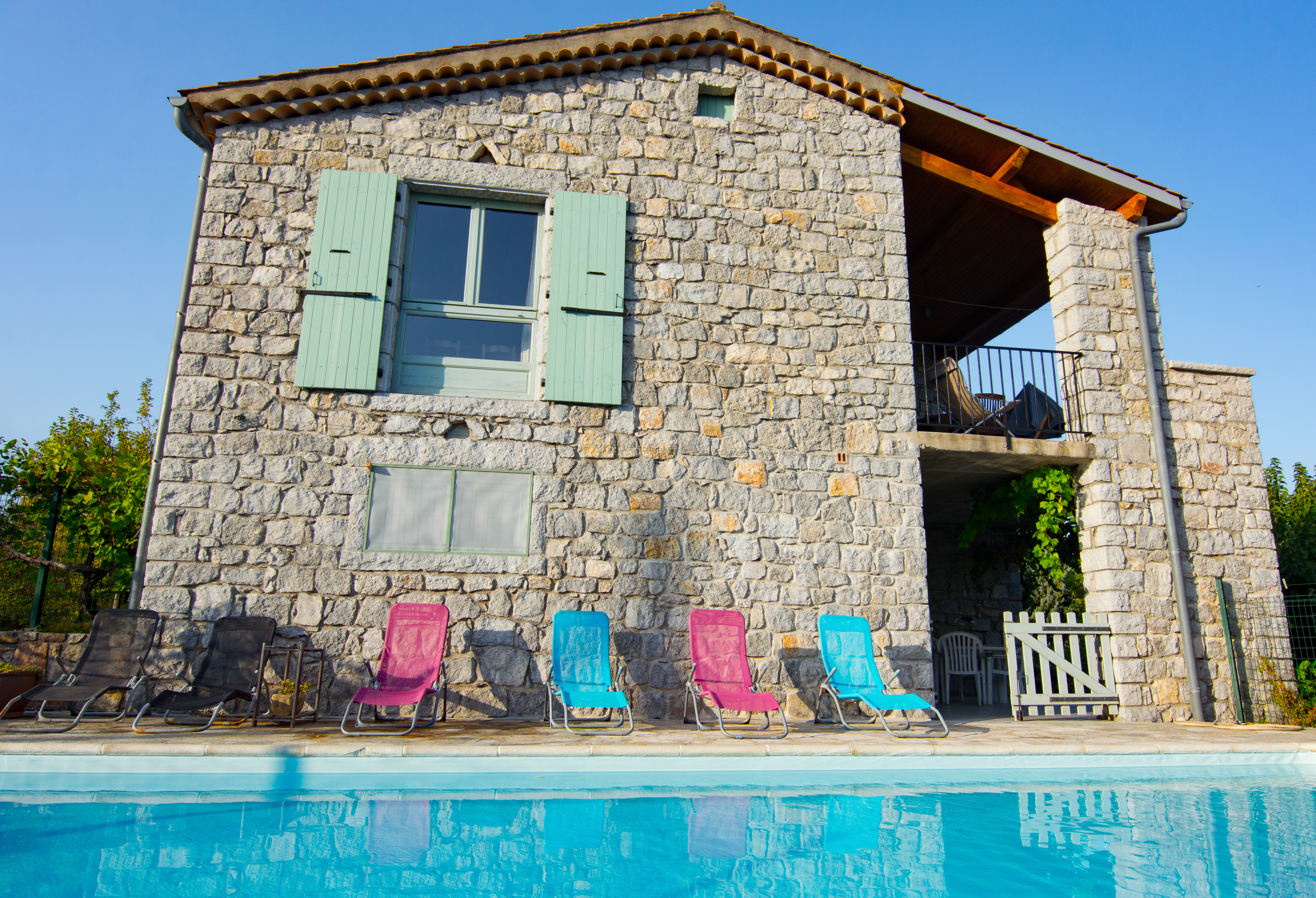 Les Mûriers, named after the 23 ancient Mulberry trees in the expansive garden, is a family-owned home available for rent in the Ardèche region of France. The property offers vineyard views, sunshine and privacy- the ideal setting for a relaxing week by the pool among family and friends. Located in Chauzon, it is a short walk from the Ardèche river and is the perfect base for exploring a region rich in culture, cuisine, history, outdoor activities and- most importantly- delicious ice cream!
