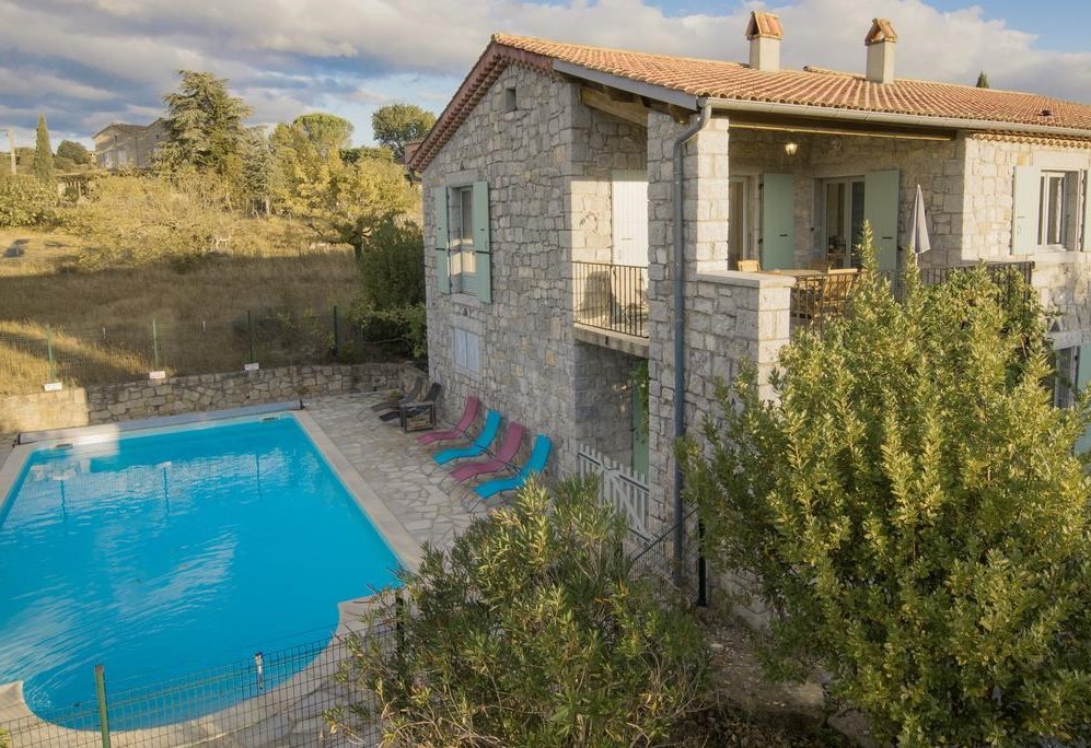 Les 23 Mûriers, named after the 23 ancient Mulberry trees in the expansive garden, is a family-owned villa sleeping up to six persons available for rent in the southern Ardèche region of France. The property offers a private pool, lovely vineyard views and rural calm - ideal for a relaxing week with family and friends. Located on the edge of Chauzon village it is a short walk from the Ardèche river and is the perfect base for exploring a region rich in wonderful landscapes, cuisine, history and outdoor activities.